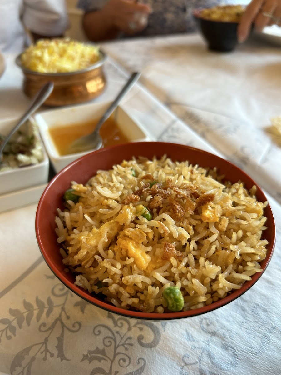 Biryani: Fragrant rice, spiced just right, served with your choice of meat or vegetables.